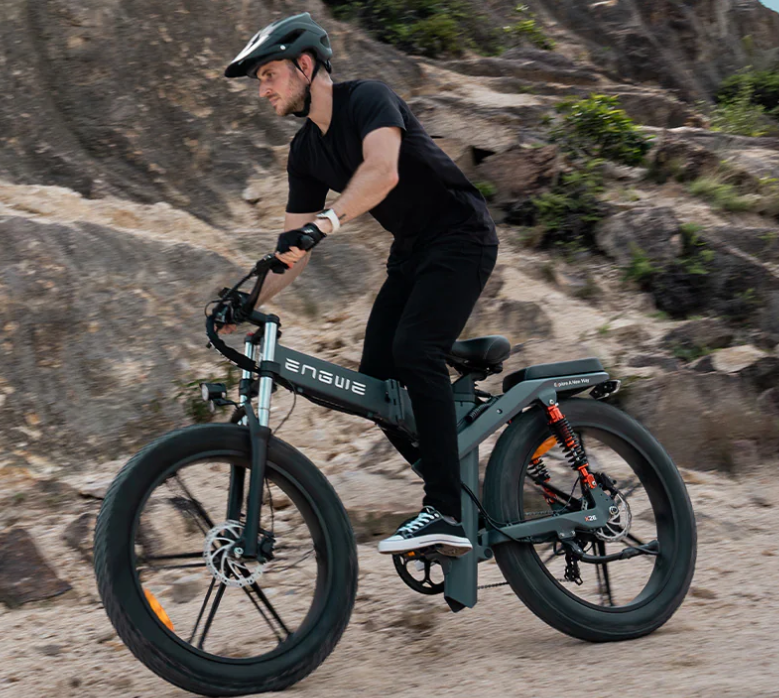 ENGWE X26 è una potente e-bike con motore da 1200 W peak, autonomia fino a 150 km, tripla sospensione, freni idraulici e pneumatici fat 26×4.0″ – ideale per terreni impegnativi e strade urbane.