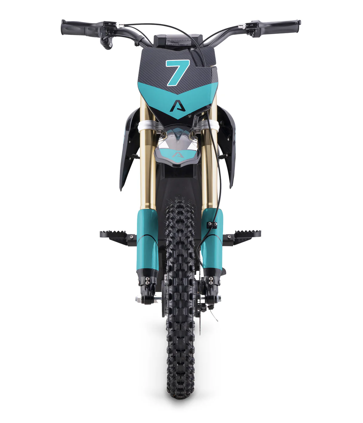 Il potente motore brushless da 1400 W fornisce alla LAMAX eJumper DB70 potenza sufficiente anche per terreni leggermente collinari e consente di raggiungere una velocità massima di 42 km/h. La batteria Li-Ion 48 V / 13 Ah garantisce un’autonomia indicativa fino a 35 km, mentre l’autonomia reale dipende dal peso del pilota, dallo stile di guida e dal terreno. L’accelerazione regolabile (0,2 – 1 secondo) permette una partenza fluida e un aumento graduale della velocità, ideale per i giovani principianti. Le ruote da 14″ davanti e 12″ dietro, insieme agli ammortizzatori anteriori a olio e alla sospensione posteriore a molla, garantiscono stabilità e comfort anche a velocità più elevate. I freni, l’indicatore LCD della batteria e il sistema di frenata automatica assicurano che le prestazioni della moto siano utilizzate in sicurezza. Questo modello offre il giusto equilibrio tra potenza, velocità e autonomia per i giovani piloti che desiderano esplorare il terreno e sviluppare le proprie abilità con una moto elettrica.