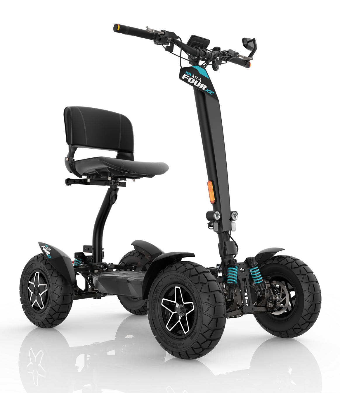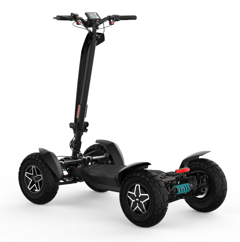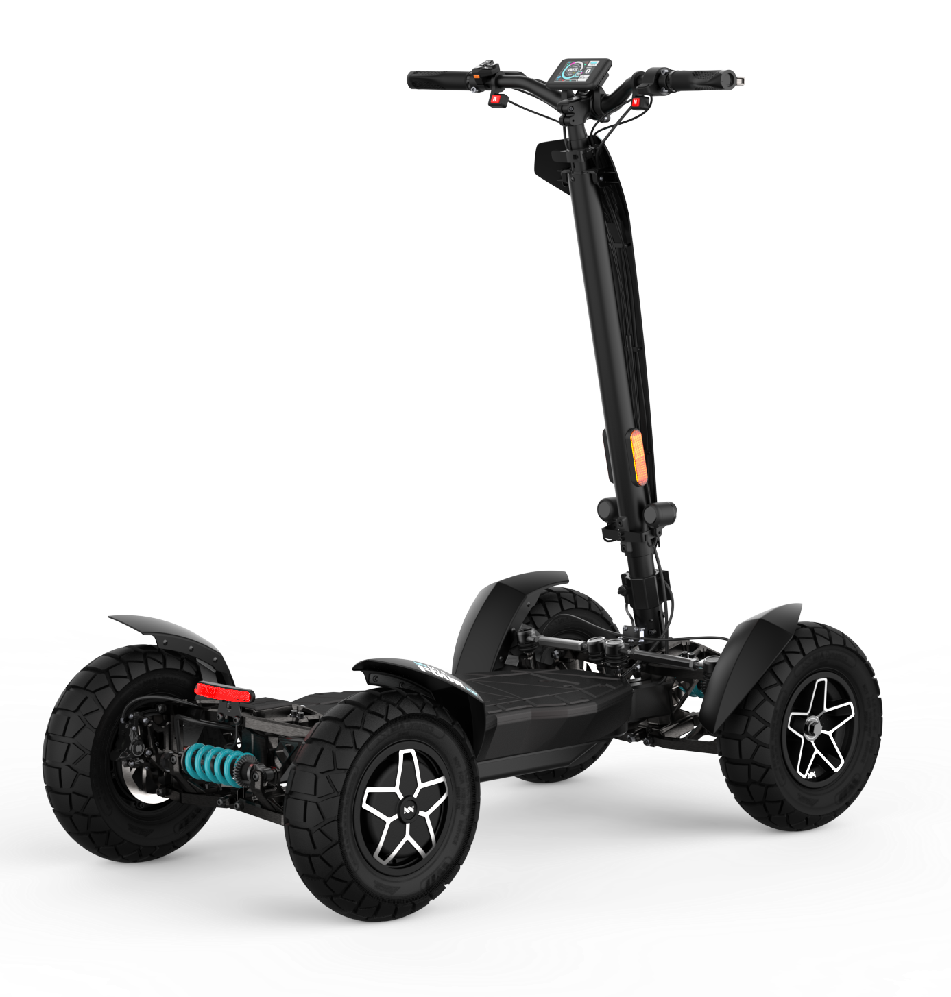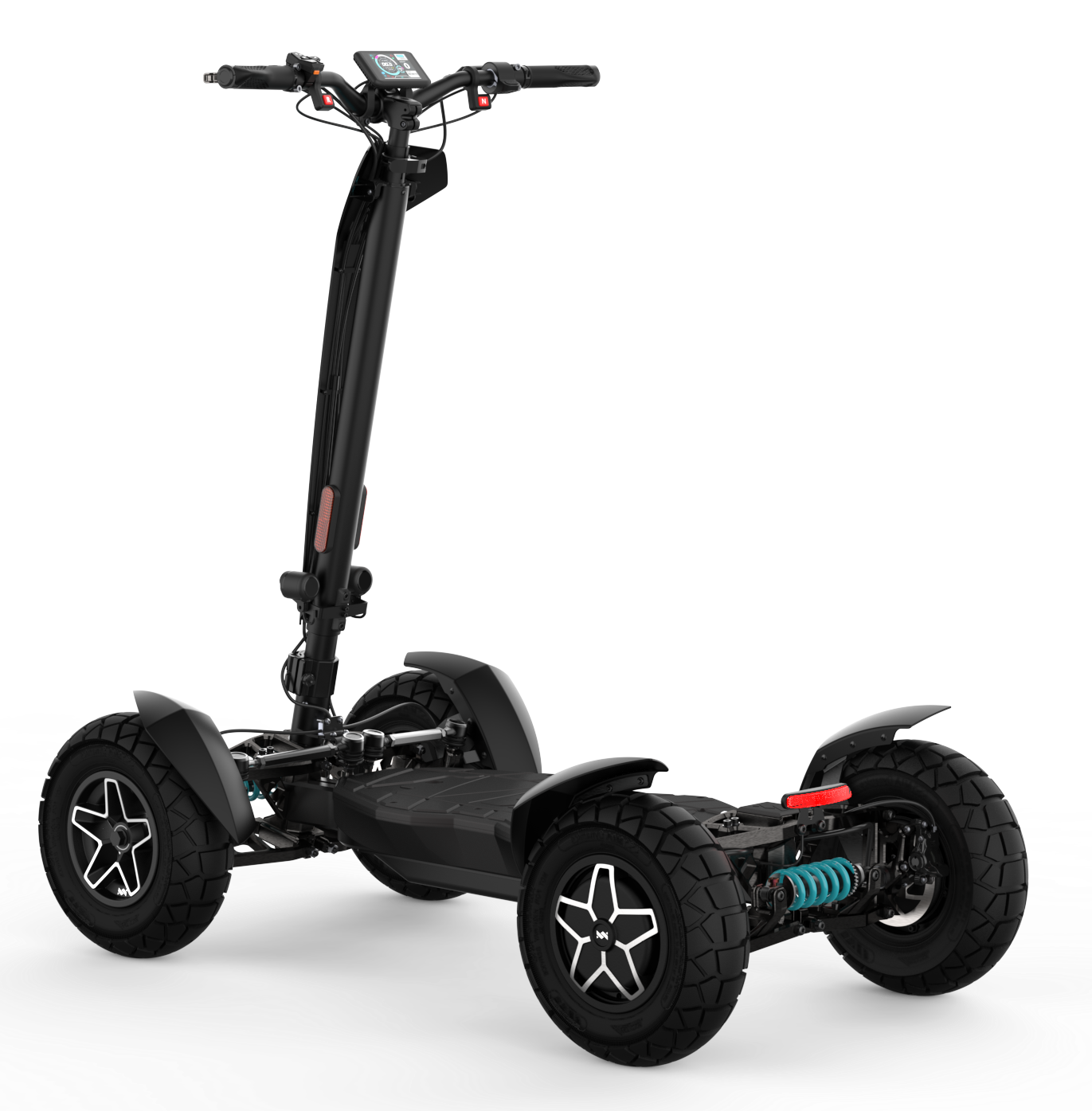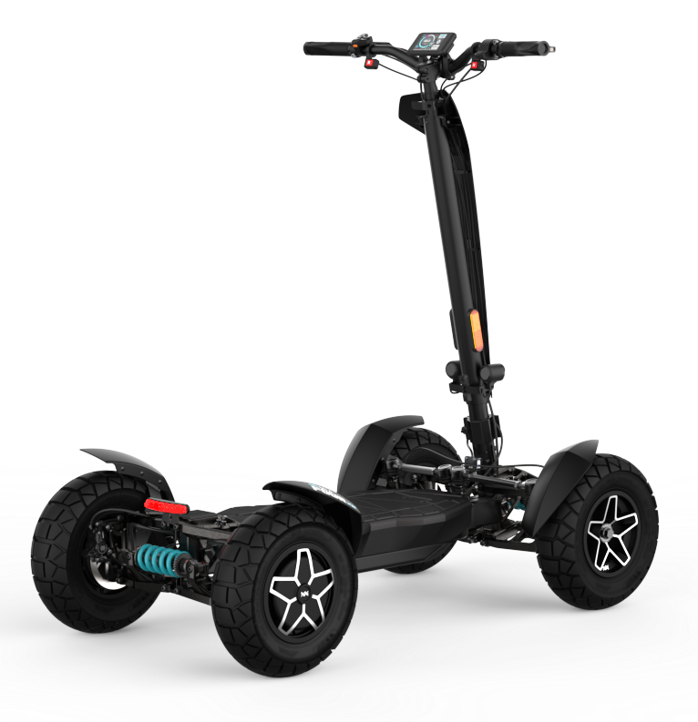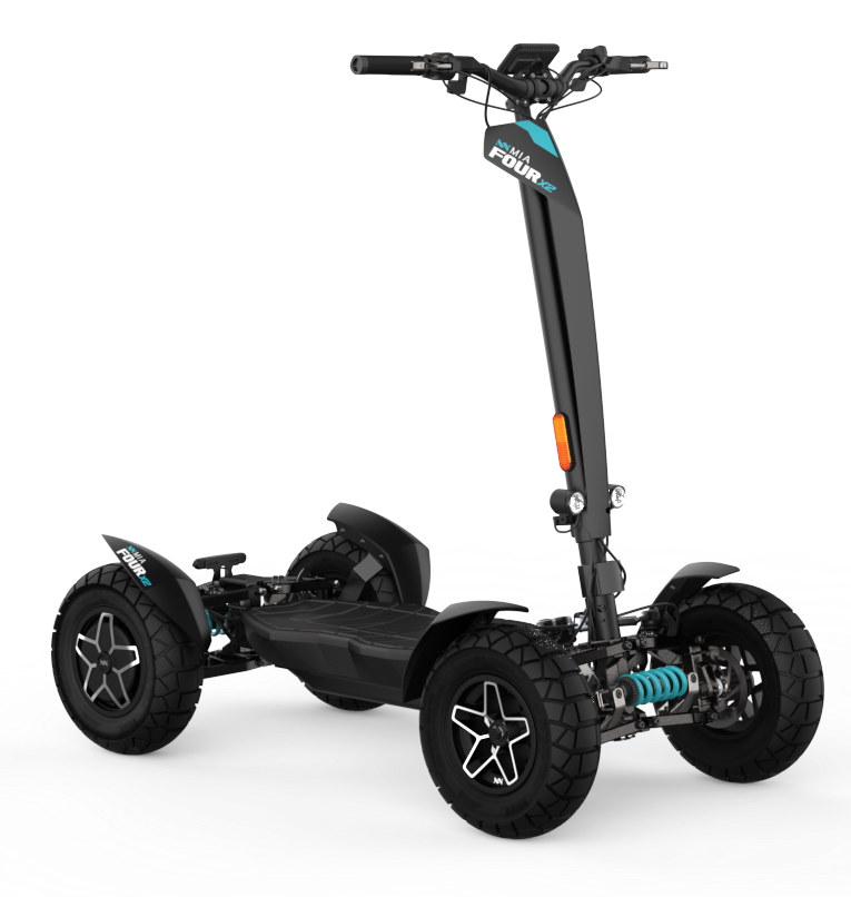 Il potente monopattino elettrico MIA FOUR X2 con trazione 4x2, potenza fino a 7.200 W, autonomia di 100 km e massima stabilità grazie alle quattro ruote.