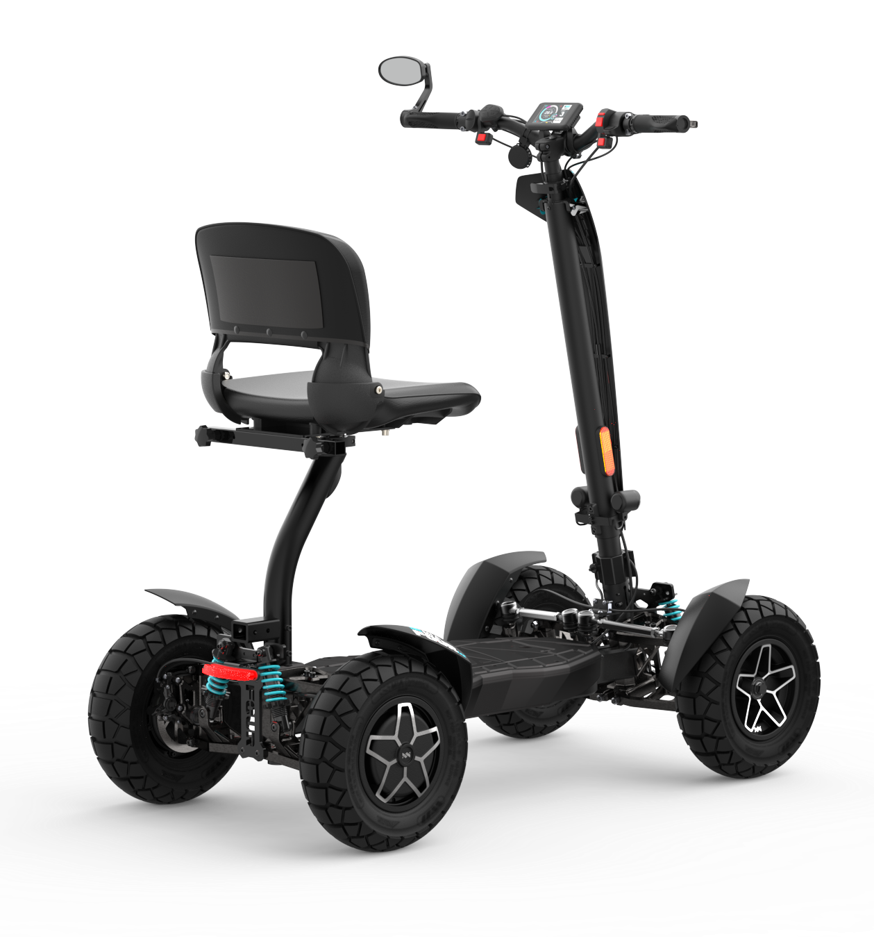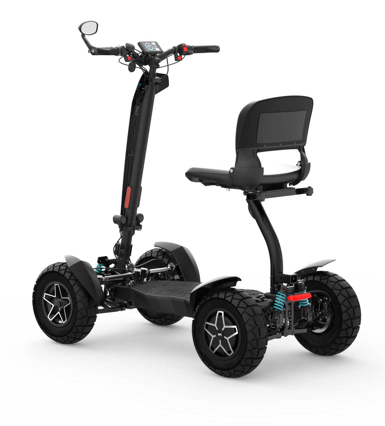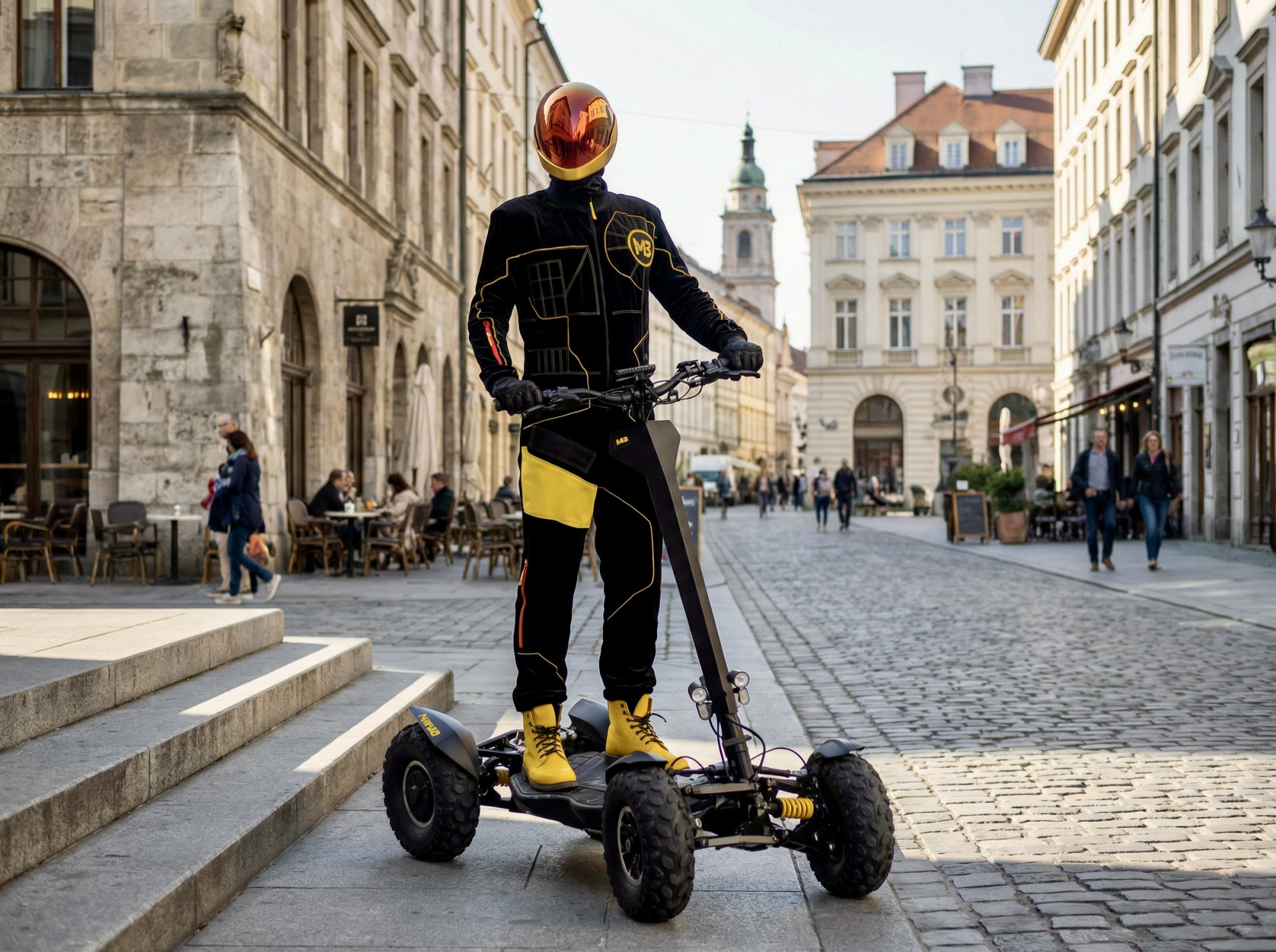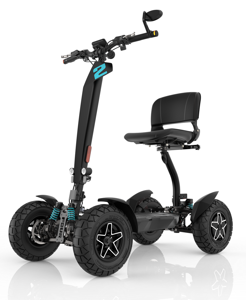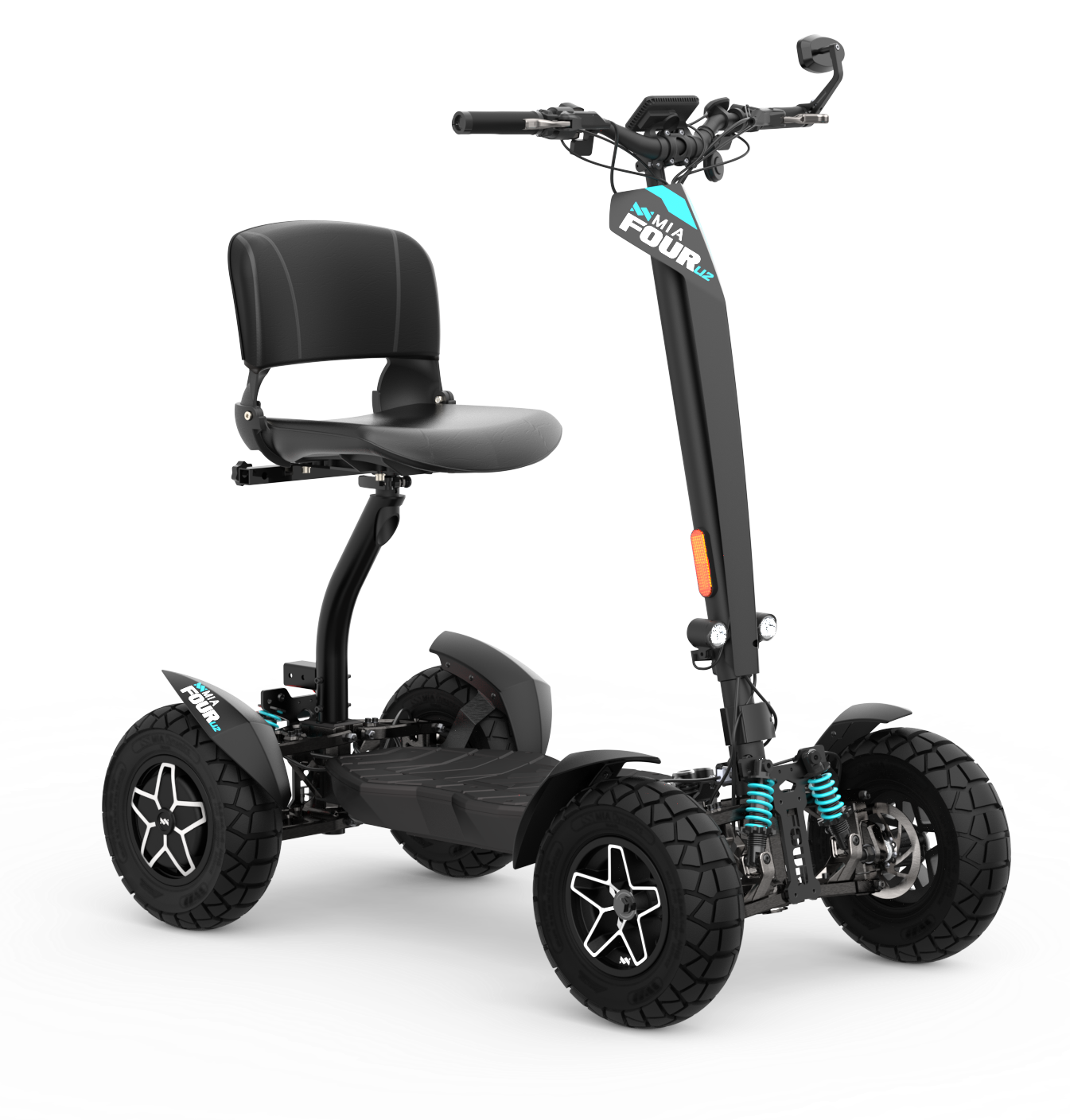 Il potente monopattino elettrico MIA FOUR X2 con trazione 4x2, potenza fino a 7.200 W, autonomia di 100 km e massima stabilità grazie alle quattro ruote.