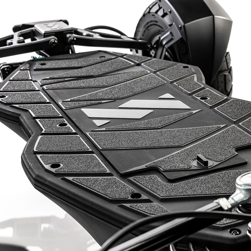 Il cuore del MIA Four X4 è un doppio motore BLDC da 60 V con una potenza di picco combinata di 7200 W, che consente un’accelerazione rapida e fluida fino a 72 km/h. Grazie alla gestione ottimizzata della potenza, il monopattino può affrontare pendenze fino a 30°, collocandosi tra i modelli più potenti della sua categoria. L’energia è fornita da una batteria 60 V / 35 Ah con celle Samsung 21700 di alta qualità. In condizioni ideali offre un’autonomia fino a 120 km in modalità 4×2 o circa 96 km in modalità combinata 4×4. La ricarica richiede circa 8 ore, e la batteria può essere facilmente rimossa per la ricarica separata. L’autonomia reale varia naturalmente in base al terreno, al peso del conducente e allo stile di guida – in uso quotidiano si possono ottenere 80–100 km, ben al di sopra della media dei modelli concorrenti. Inoltre, la frenata rigenerativa aiuta ad aumentare leggermente l’autonomia durante le discese o le decelerazioni.