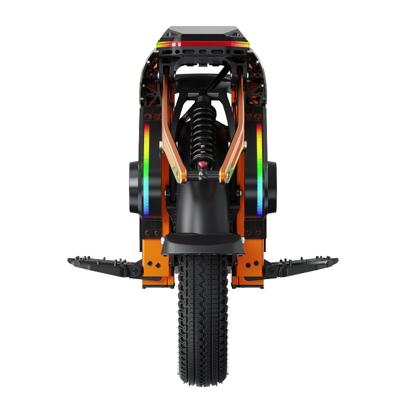 Nel S16 Pro la sicurezza ha un ruolo fondamentale. Il faro anteriore regolabile automaticamente, la luce posteriore del freno e le frecce integrate assicurano che il conducente sia sempre ben visibile. La sospensione con corsa di 88 mm assorbe le vibrazioni, migliora la stabilità e aumenta il comfort su strade irregolari. Il sistema software intelligente KingSong regola automaticamente la coppia quando si raggiunge una pendenza massima di 48°, evitando il sovraccarico del motore. L’app KingSong fornisce in tempo reale dati su temperatura del motore, tensione della batteria e diagnostica del sistema, garantendo il pieno controllo sullo stato e la sicurezza del veicolo.