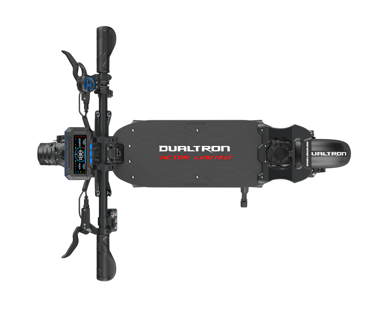 Il Dualtron Victor Limited EY4 del 2025 è la variante tecnologicamente più avanzata della gamma Victor. Combina una struttura robusta ispirata al modello Thunder 3 (grazie all’albero manubrio quadrato rinforzato ad alta resistenza) e il sofisticato display EY4 con Bluetooth, che fornisce informazioni su velocità, stato della batteria, impostazioni di potenza e cruise control. Con una potenza massima fino a 4.000 W (2 × 1.300 W nominali) e un’autonomia fino a 110 km (con batteria 60 V 35 Ah), questo monopattino offre prestazioni e durata al top, mantenendo la possibilità di circolare legalmente su strada entro il limite di 25 km/h. Stabilità e comfort sono garantiti da un peso di 39,1 kg e una portata di 120 kg, che lo rendono una scelta adatta ai piloti esigenti dal punto di vista tecnico.