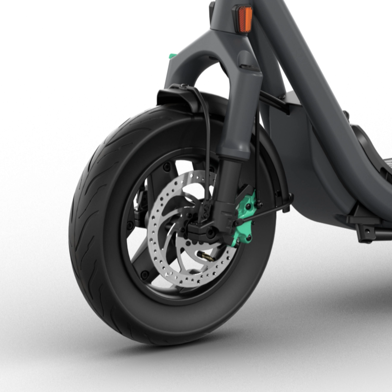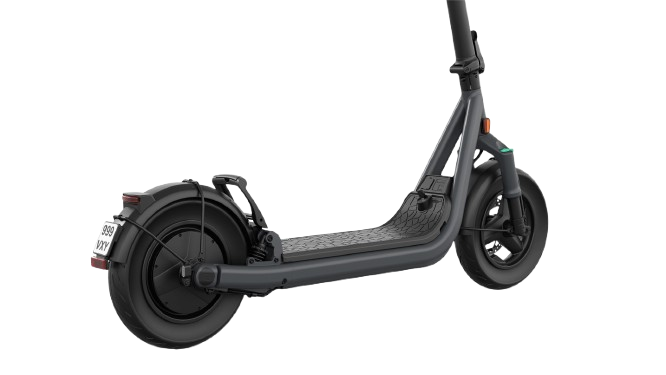 La sicurezza su Egret GT è a un livello estremamente elevato. Il massimo controllo durante la guida è garantito dai freni a disco idraulici con dischi da 160 mm, che offrono una frenata stabile, precisa e immediata. I pneumatici da 13" assicurano un eccellente contatto con il terreno e una distanza di arresto più breve. L’illuminazione è gestita in modo professionale: faro LED OSRAM da 80 lux, LED posteriore con funzione freno e frecce integrate aumentano notevolmente la visibilità di notte e in condizioni meteo avverse. Il telaio è progettato per sostenere un carico di 150 kg senza perdita di stabilità. La sicurezza elettronica è garantita da sblocco NFC, allarme e immobilizer, che proteggono il monopattino ogni volta che viene parcheggiato. La funzione Apple Find My consente il monitoraggio costante della posizione, riducendo sensibilmente il rischio di furto. La resistenza all’acqua IPX5 permette di guidare anche sotto la pioggia, mentre la batteria con certificazione IPX7 resiste anche a una breve immersione in acqua. Grazie ai 62 Nm di coppia, l’accelerazione è immediata e sicura anche in condizioni più impegnative.