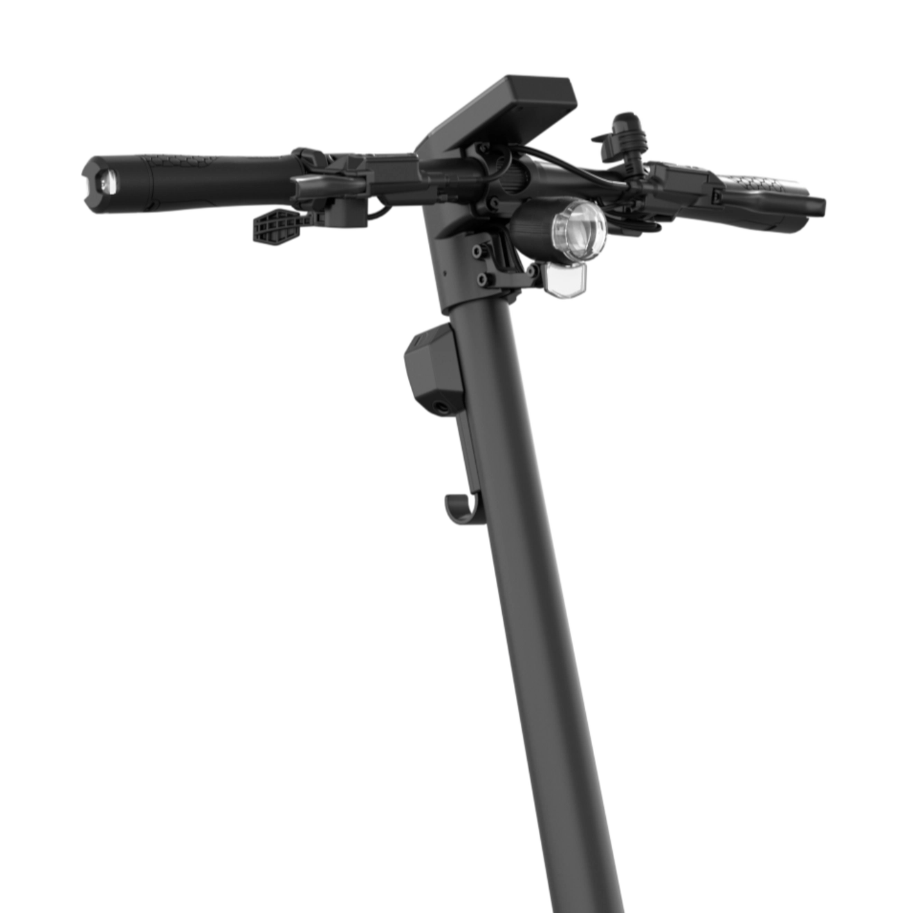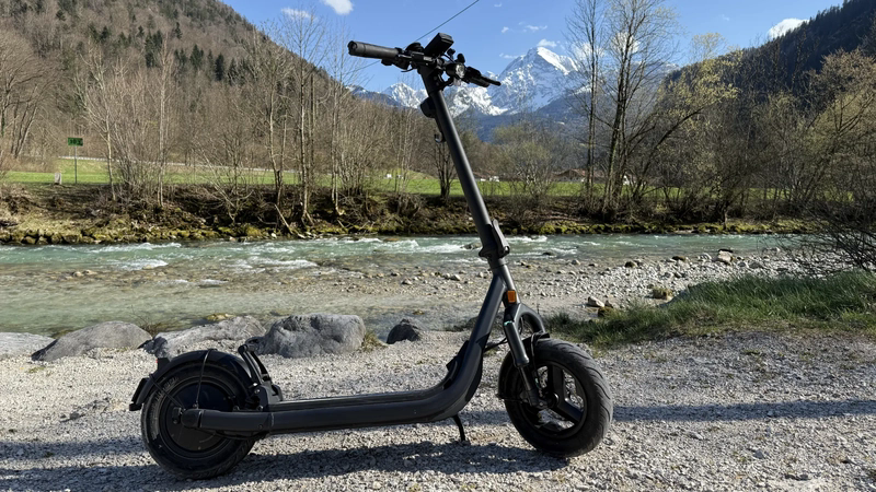 Egret GT si distingue per un design robusto ma allo stesso tempo moderno. Da aperto misura 136 × 67 × 128 cm, mentre da chiuso solo 136 × 60 cm, facilitando notevolmente la gestione e lo stoccaggio. La pedana, con dimensioni generose 17 × 46 cm, offre una posizione stabile e allo stesso tempo nasconde la batteria sostituibile rapidamente, una delle funzioni più pratiche di questo modello. La doppia sospensione – forcella anteriore upside-down RST a olio con escursione di 5 cm e ammortizzatore posteriore regolabile – garantisce comfort anche su superfici irregolari. Il monopattino è dotato di pneumatici da 13" con protezione anti-foratura in acciaio, che aumentano la stabilità alle velocità più elevate. L’illuminazione è premium: faro LED OSRAM anteriore da 80 lux, luce LED posteriore con effetto freno e indicatori di direzione integrati davanti e dietro. Il controllo è completato da un display TFT da 3,5", che mostra chiaramente velocità, capacità della batteria, modalità di guida e frecce. Tra le funzioni utili ci sono anche sblocco NFC, allarme elettronico, immobilizer e compatibilità con Apple Find My, riducendo significativamente il rischio di furto. La resistenza all’acqua IPX5 per il monopattino e IPX7 per la batteria completano l’eccellente robustezza dell’intero sistema.