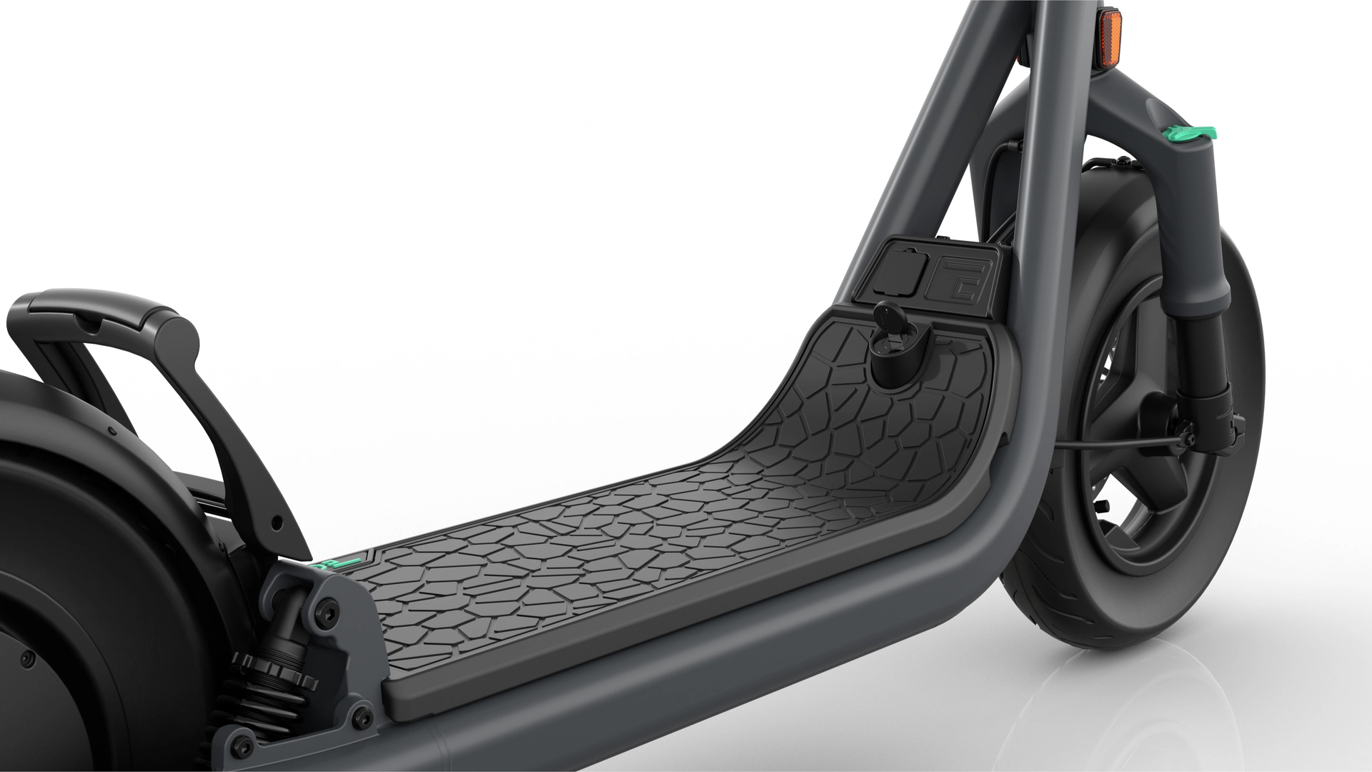 Egret GT è alimentato da un motore con potenza di picco di 1 620 W, che garantisce un’accelerazione impressionante e permette una guida stabile anche su terreni più difficili o con carichi maggiori. La coppia di 62 Nm assicura una spinta potente in salita e una risposta rapida ai comandi del rider. La batteria sotto la pedana ha una capacità di 15 Ah o 20 Ah con una tensione di 47,45 V, consentendo un autonomia di 75 km con la batteria più piccola e fino a 100 km con quella più grande. La ricarica richiede solo 5 ore con un caricatore da 3 A, ideale per l’uso quotidiano. Grazie ai pneumatici da 13" e alla doppia sospensione – RST anteriore con escursione 5 cm e ammortizzatore posteriore regolabile – la guida è confortevole anche a velocità più elevate. Le prestazioni restano sempre sotto il pieno controllo del rider grazie al display TFT da 3,5", che mostra tutti i valori necessari per una guida sicura e fluida.
