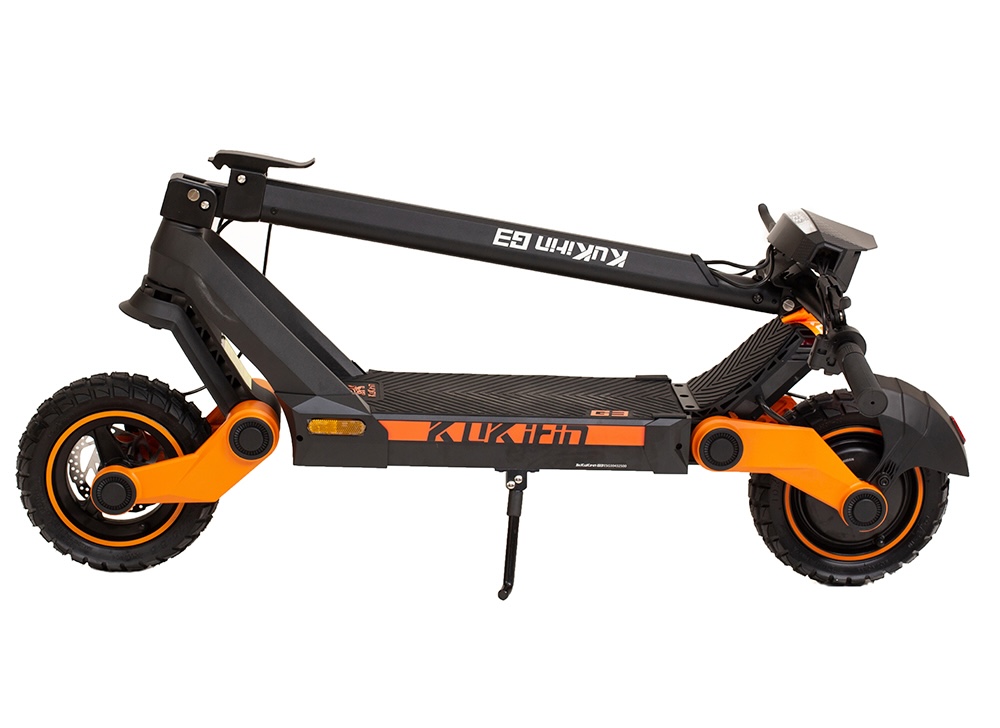 Il KuKirin G3 è un potente monopattino elettrico con motore da 1200 W, velocità fino a 50 km/h, autonomia di 70 km e sospensioni robuste per la guida in città e fuoristrada.