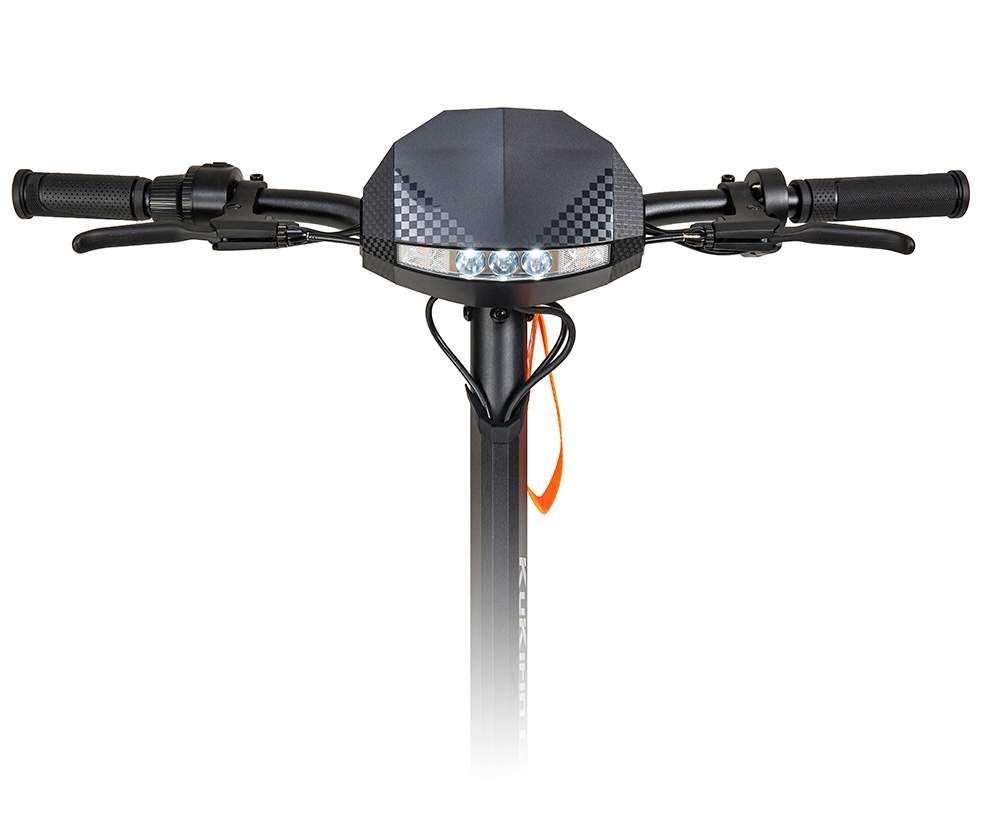 La sicurezza è una delle principali priorità del KuKirin G3. Il monopattino è dotato di freni a disco anteriori e posteriori con distanza di arresto ≤ 4 m, garantendo una frenata rapida e affidabile anche ad alte velocità. Il sistema frenante è progettato per offrire prestazioni ottimali in diverse condizioni di guida, comprese superfici bagnate. L’illuminazione è completa – la luce LED anteriore da 3 W con angolo di 60° offre visibilità sufficiente, la luce freno posteriore avvisa i conducenti dietro di voi e le quattro luci direzionali aumentano la visibilità durante le svolte. Con il manubrio largo 660 mm, il pilota ha una presa stabile e migliore controllo in situazioni impegnative. Il robusto telaio in lega di alluminio protegge da danni e garantisce sicurezza anche su terreni accidentati. La combinazione di freni di qualità, illuminazione potente e struttura stabile rende il KuKirin G3 un partner sicuro per la guida urbana e fuori città.