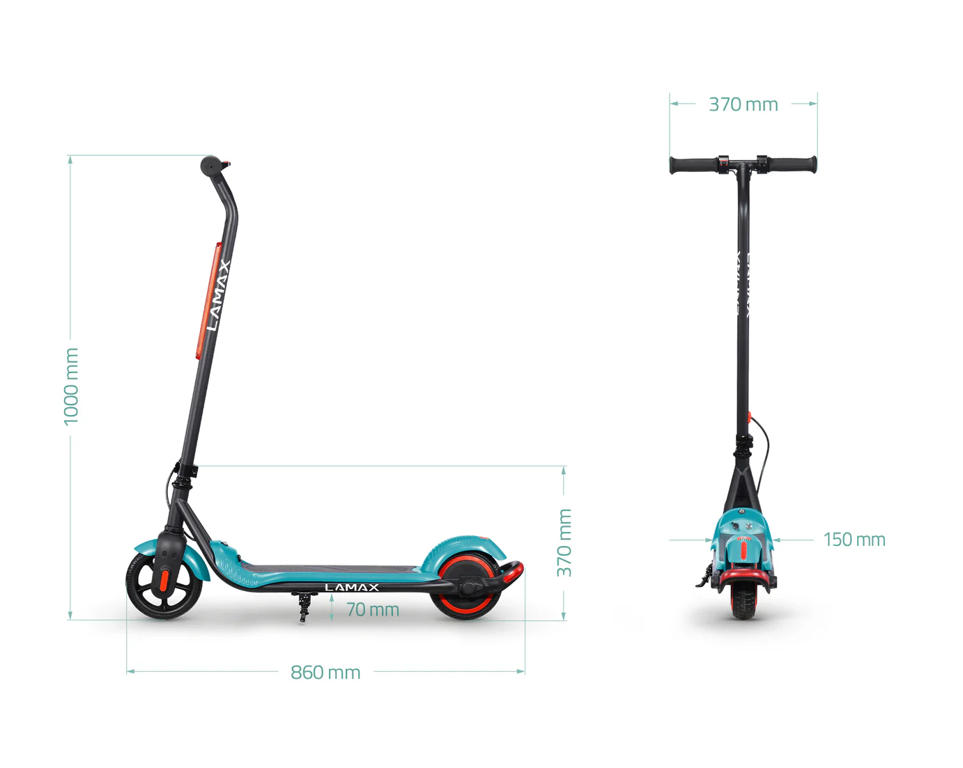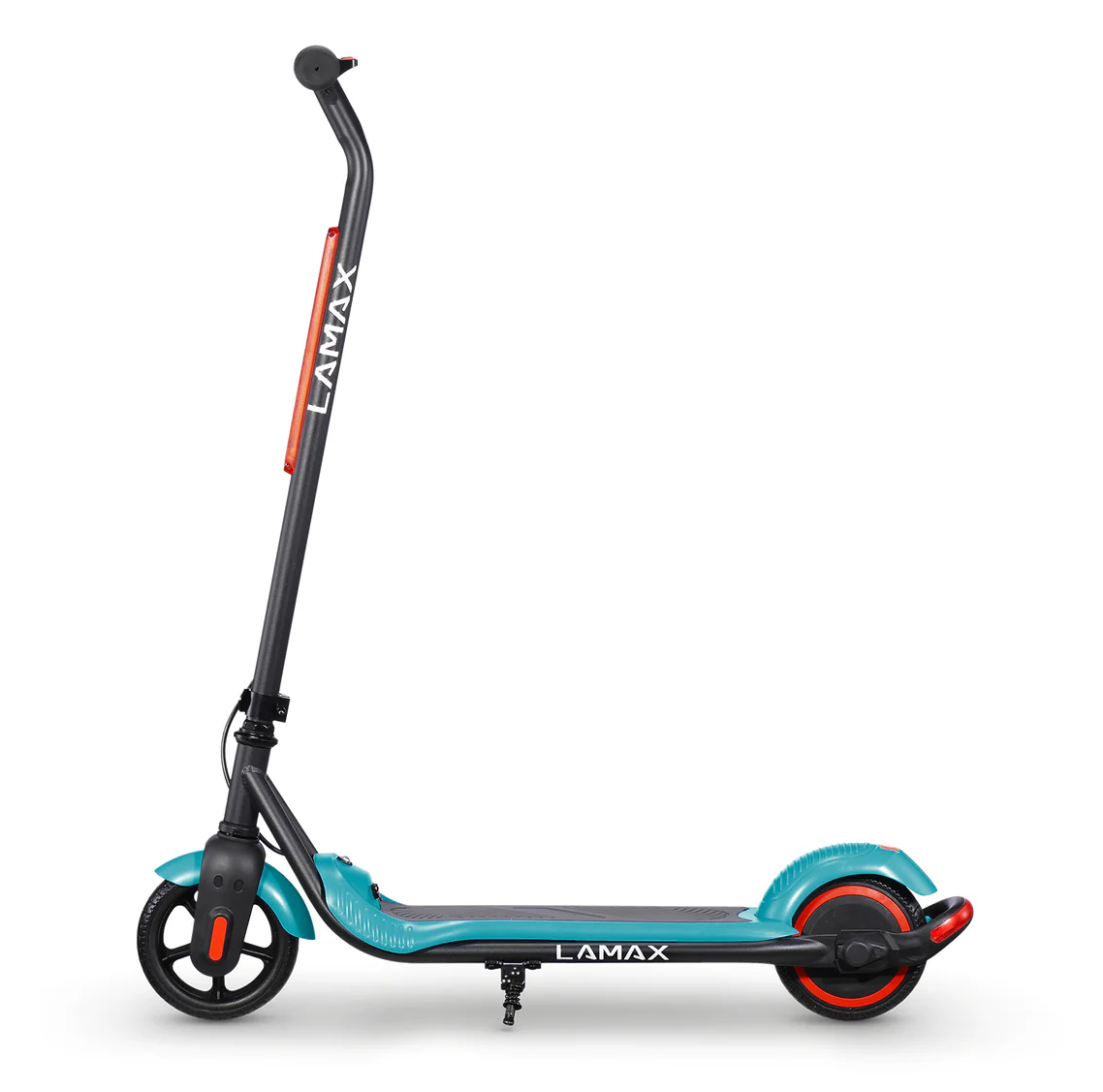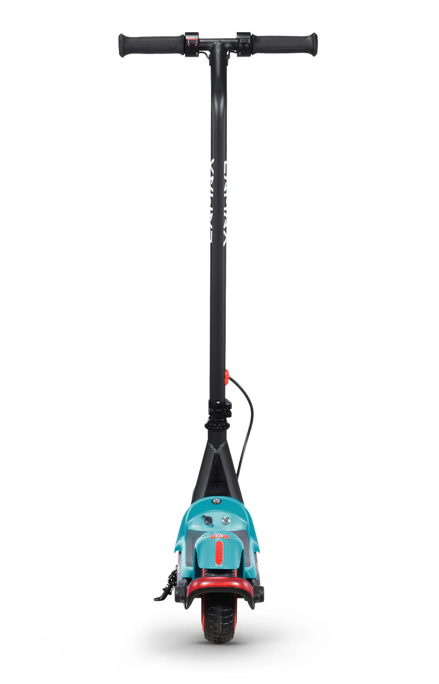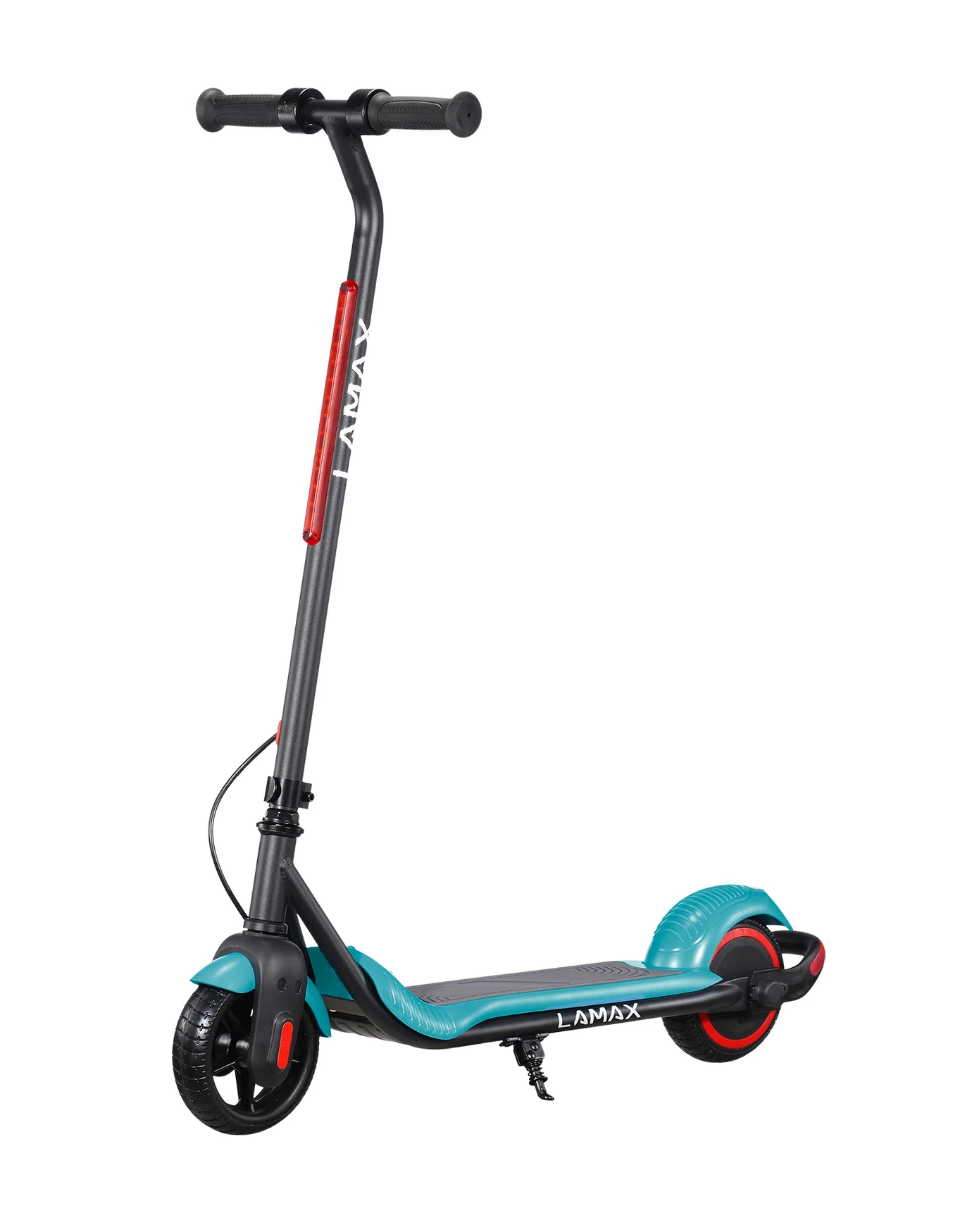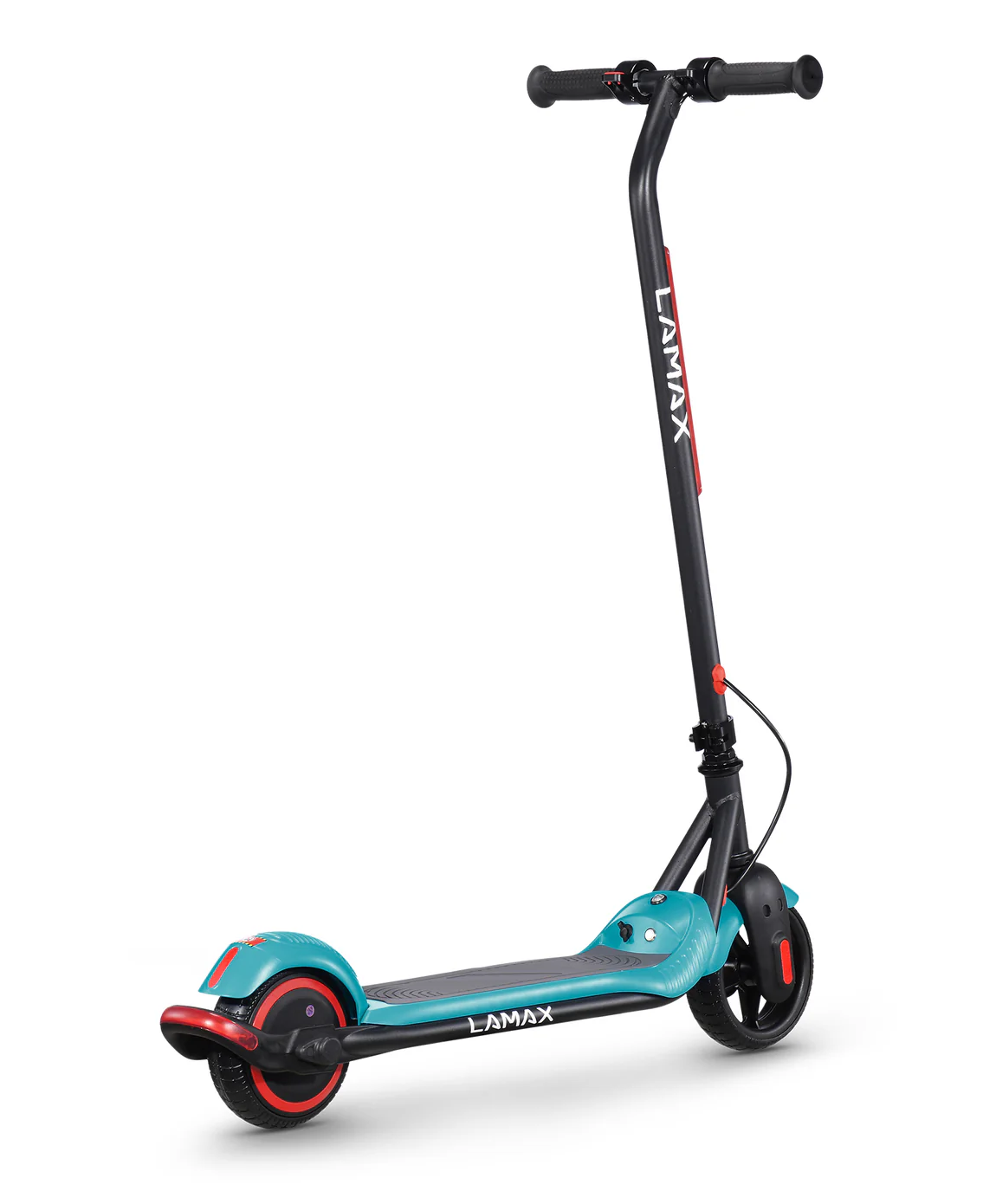 LAMAX eFlash SC20 attira l’attenzione a prima vista grazie al design accattivante nella combinazione di nero e turchese, che appare fresco e sportivo. Il monopattino ha dimensioni compatte di 88 × 100 × 37 cm quando è aperto, il che lo rende adatto ai bambini e pratico da trasportare o riporre. La struttura in acciaio è solida e resistente ma allo stesso tempo leggera, quindi anche un bambino può sollevare o spostare il monopattino. Le ruote da 6,5 pollici sono realizzate in materiale perforato resistente che elimina il rischio di forature e non richiede manutenzione come gli pneumatici gonfiabili. Il monopattino offre un’illuminazione LED anteriore che aumenta la visibilità in condizioni di scarsa luminosità e una luce di stop posteriore che avvisa gli altri quando il bambino rallenta. Una funzione pratica è il meccanismo pieghevole del manubrio, che consente una rapida chiusura e una facile conservazione. La sicura “zero-start” assicura che il monopattino non parta da solo: il motore si attiva solo dopo la spinta con il piede, rendendo l’uso più sicuro per i bambini. Sul cruscotto si trova un indicatore LED della batteria che mostra chiaramente quando è necessario ricaricare. La confezione include tutto il necessario: il monopattino stesso, il caricabatterie, un set di viti, attrezzi e manuale. Grazie a questa dotazione completa i bambini possono iniziare subito a divertirsi e i genitori hanno la certezza che non manca nulla.