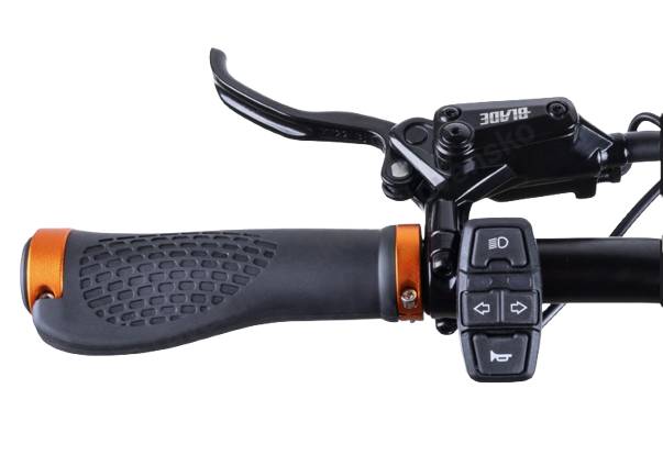 La sicurezza è una delle priorità principali del Teverun Blade GT+ II. Grazie alla combinazione di doppi freni a disco idraulici, freno elettronico e telaio robusto, è possibile arrestarsi in sicurezza anche da velocità superiori agli 80 km/h. Le sospensioni idrauliche anteriori e posteriori garantiscono un controllo eccellente su diversi tipi di superfici – asfalto, ghiaia, irregolarità o sterrato leggero. Un vantaggio significativo è il sistema di controllo della trazione TCS, che riduce il rischio di slittamento delle ruote in fase di accelerazione o su superfici bagnate. L’illuminazione LED ad alta potenza assicura una buona visibilità notturna, mentre la luce freno posteriore e gli indicatori di direzione migliorano la comunicazione con gli altri utenti della strada. Il telaio massiccio, la portata elevata di 120 kg e il baricentro basso garantiscono stabilità anche alle alte velocità. Le funzioni intelligenti come lo Smart BMS proteggono la batteria da surriscaldamento e sovraccarico, mentre il blocco NFC riduce il rischio di furto – caratteristiche fondamentali in questa categoria.